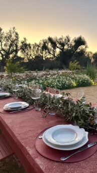olive trees, one of the oldest varietals in the region. The uliveto is a place to wander, rest, or dine beneath the branches. In summer, cicadas sing. In harvest season, you’re invited to join us in gathering the gold of Puglia.